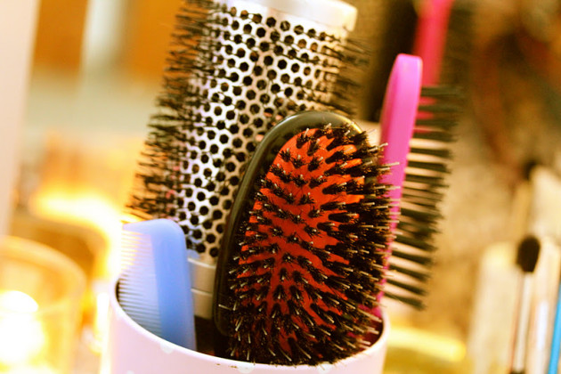 “Then, run it under the sink and use your hands to massage the bristles to break up product that may be stuck in it. Then use your blowdryer and dry it up.”