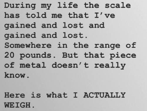 The posts are hugely empowering, and act as a reminder that all women, including celebrities, are far more than their scale reading.