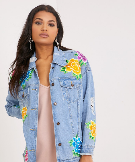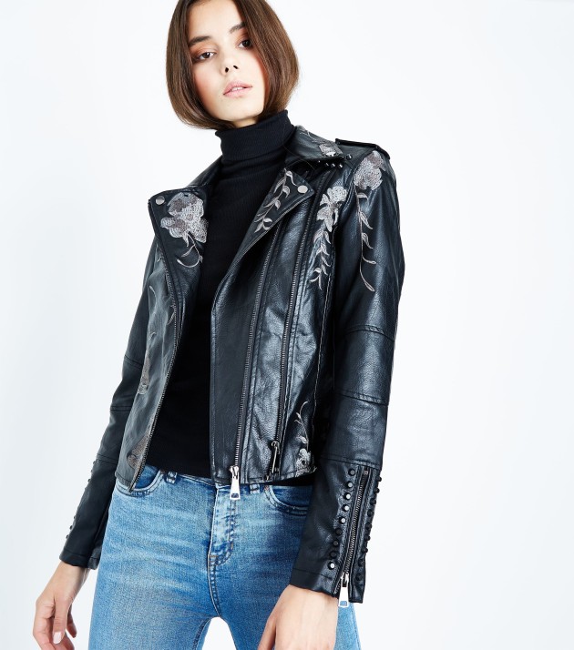 Blue Vanilla Black Floral Embroidered Studded Biker Jacket €29.00