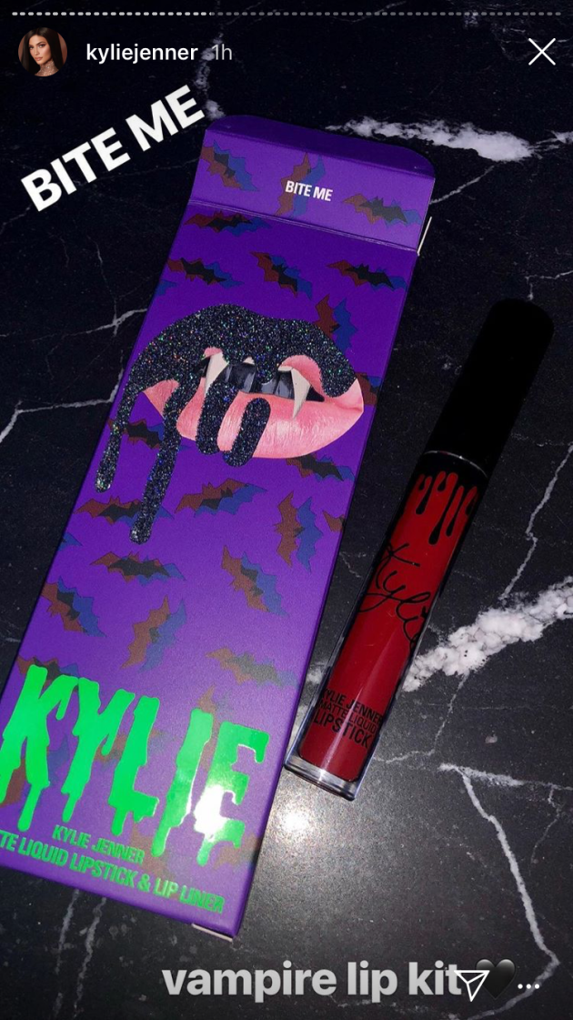It's a matte black called Nightfall, and seems to be the more mature development of one of her early lip kits called Dead of Knight – a product that was dogged with bad reviews due to it's less than perfect formula.