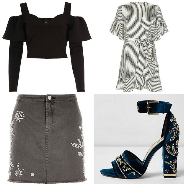 Velvet T-Shirt dress €26.00, Black stripe cold shoulder frill shirt dress €60.00, Ring detail shirt dress €35.00