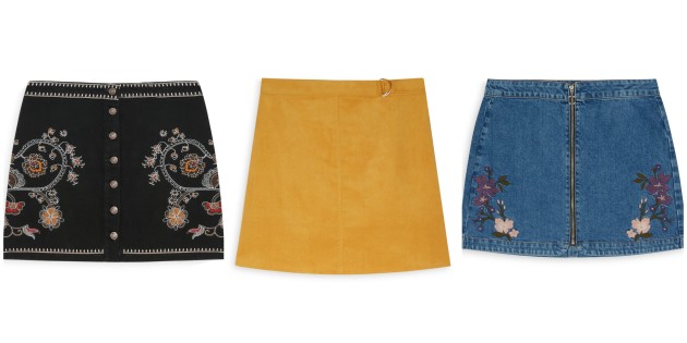 Embroidered Denim Skirt €11.00, Cord Skirt €14.00, Blue Denim Skirt €11.00