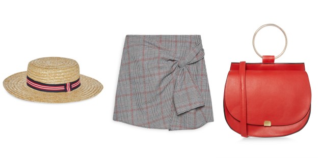Straw Boater Hat €5.00, Plaid Skirt €13.00, Bag €8.00