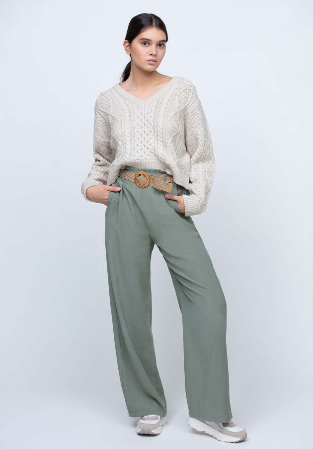 These paperbag trousers from Tiffosi are a dreamy sage green that is really in right now. The wide legged bottoms and cinched waist also allow for maximum comfort and style, with a gorgeous soft material and plenty of room, without looking sloppy. Alternatively, if you want a neater look, these cigarette pants from ASOS are a level up from typical work trousers, with a clean, tailored silhouette and a chic cropped length to the leg, the perfect trousers to take you from the office to after work drinks.