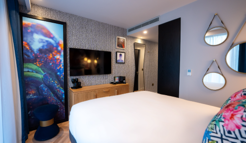 Experience the essence of Dublin in this one-of-a-kind hotel, where the city's aura is magnified, and opulence awaits. The perfect location for working, socialising, celebrating and unwinding, the interior at NYX Hotel Dublin is inspired by the vibrant energy of Dublin's streets, creating high-end design with a Dublin edge. Designed by award winning interior designer, Suzanne Garuda of Garuda Design, NYX Hotel Dublin has a modern and bold décor including bespoke artwork from Irish artists, such as Shane Sutton, Janine Jordon and Art Loves with more to be revealed in the coming months.