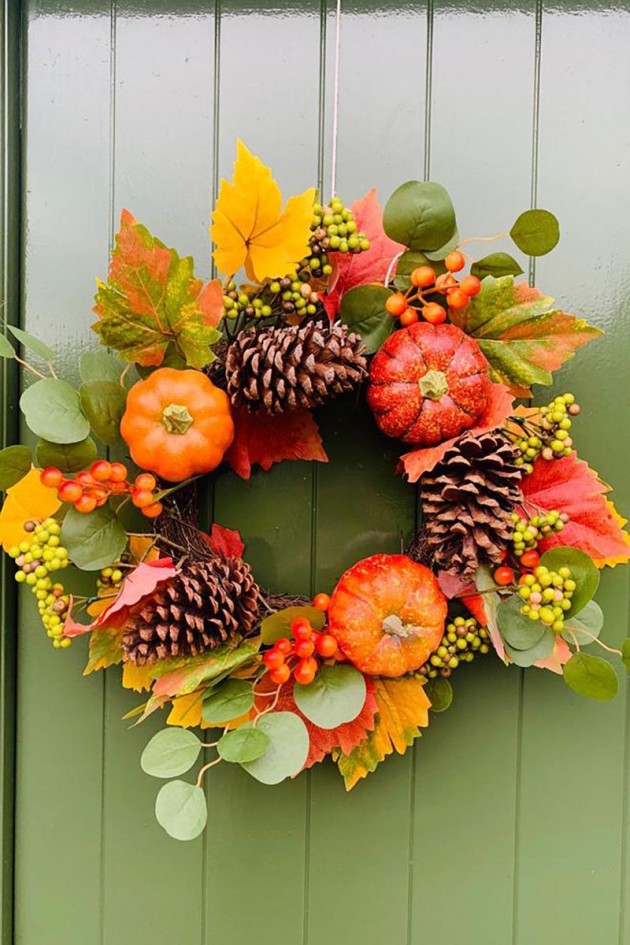 Front doors are key to giving guests a good first impression. This wreath will last for several months and looks great on your front door or even as a centrepiece on your table! The perfect home decoration for autumn with its gorgeous autumnal colours and harvest theme.