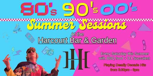 Relive the 80’s 90’s and 00’s every Saturday afternoon throughout the Summer at the Harcourt Bar & Garden summer sessions. These fun nostalgic events will run every Saturday from 3:30pm to 6pm and are guaranteed to have you and your friends dancing to the best hits from three iconic decades.