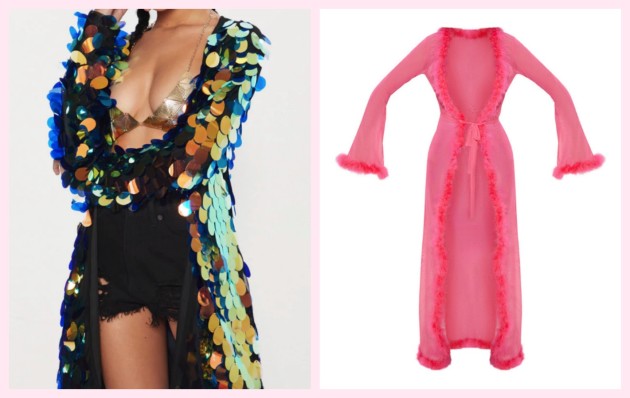 Sequin Kimono €112.00, Pink fluffy kimono €35.00