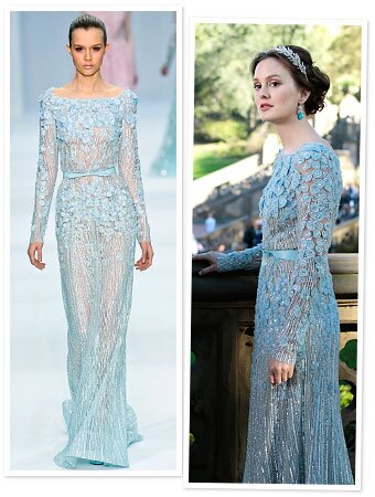 Iconic. Going against the grain of her princess-like tendencies, this blue (!) number shocked and divided fans at the time, with many disappointed Blair hadn’t indulged her more extravagant side. But this wedding dress truly captures Blair’s true look: Classy, sophisticated, statement and eye-catching. The incredibly detailed beading, slim silhouette and small train give it that extra oomph and create an iconic look.