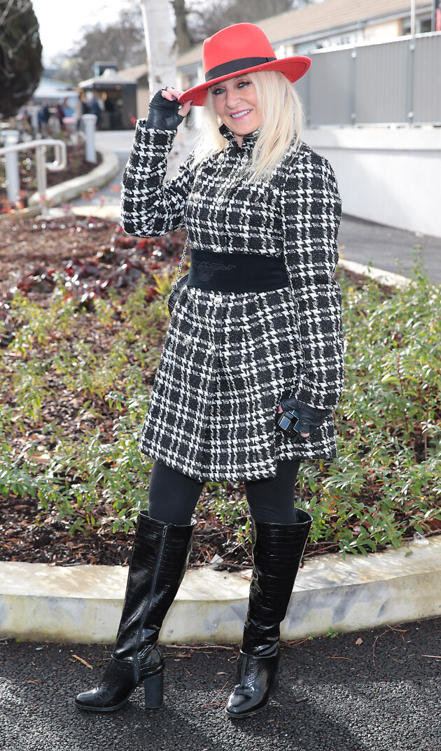 And keeping the colour pops in the family, Berni Leadon Bolger brought her black and white ensemble to life with this delightful warm red trilby.