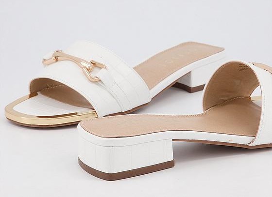 Office never disappoints in terms of style, function and quality, which is why these mules will last you. Slip into these glamorous mules, the Sabrina sandals feature white animal embossed uppers, an easy slip-on design, slight block heel, and gold hardware detailing. With all the formality of a heel but wit the comfort of a flat, it’s an ideal choice for date night.