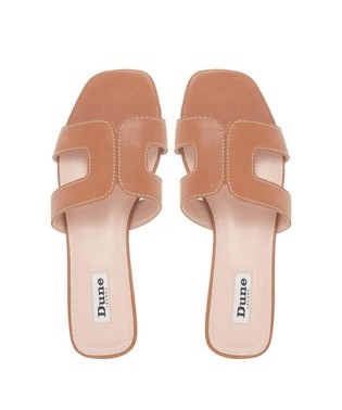 Stay smart and stylish, this summer with Dune London's Loupe slider sandal. Featuring a cut-out design with contrast stitching and a low block heel – meaning you get all the style without the pain. A slider is a great option if you like the open toe look without the annoying flip flop join between your toes. The open sandal toe and resin sole complete the striking shoe.