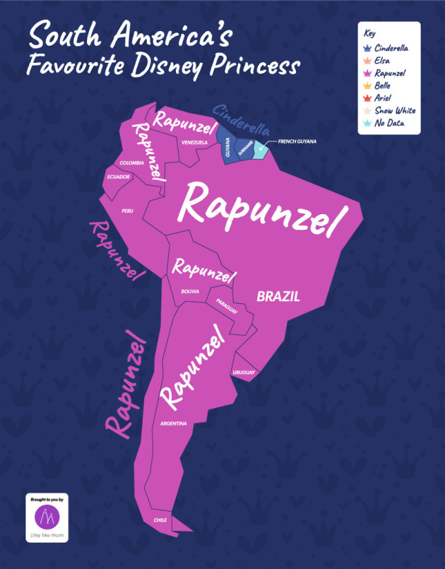 The results in South America were perhaps the most surprising of all, with almost every country on the continent searching more for Rapunzel than any other Disney princess.