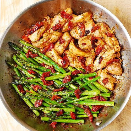 3. Paprika chicken, asparagus and sundried tomatoes skillet
