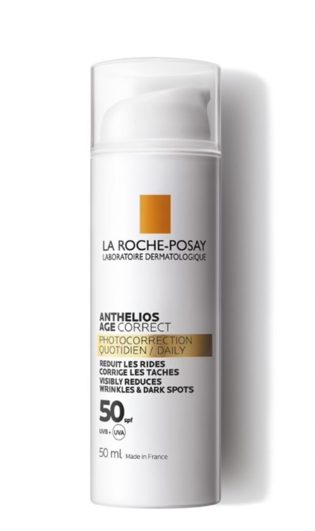 In clinical trials after four weeks of using Anthelios Age Correct SPF50, users saw: 26% reduction in dark spots, 15% reduction in wrinkles and 15% improvement in skin elasticity.