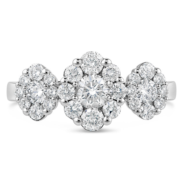 3 stone halo oval cluster diamond halo ring (€2,200 was €2,995)