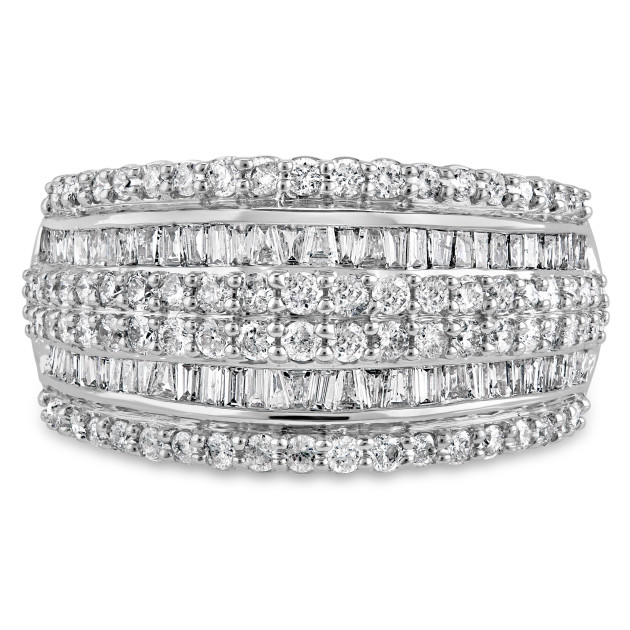 A 6 row band set with round brilliants and baguette cut diamonds (€1,495 was €1,995)