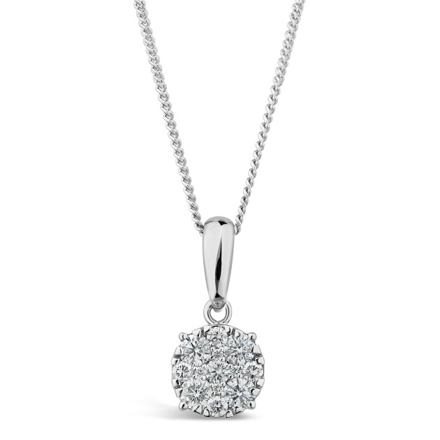 To complement the rings, there is the platinum cluster pendant (€495 was €995)