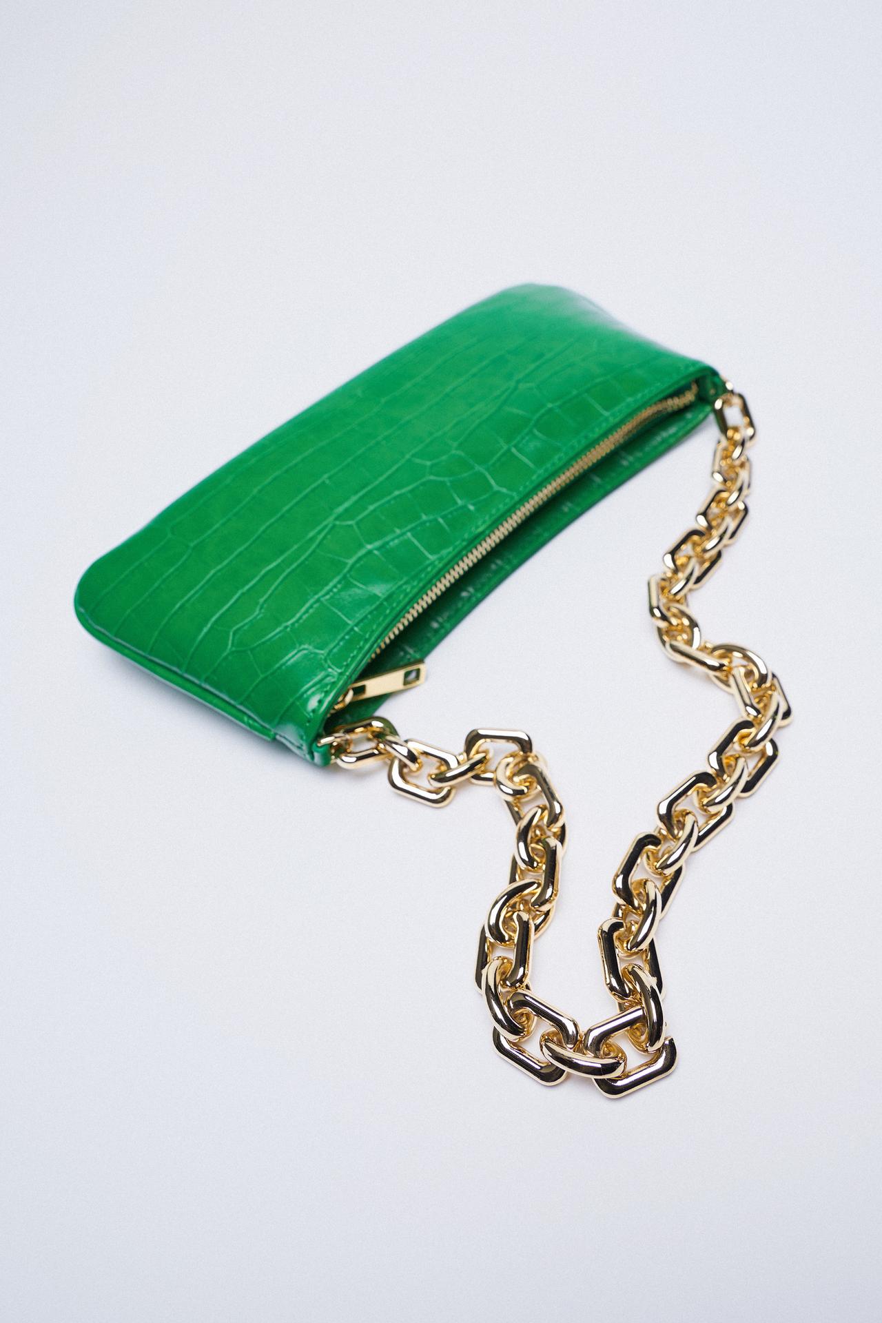 The 90s are iconic for more reasons than we can count, but one of the major symbols of this iconic time is the baguette bag. Coined by Fendi, the ‘Fendi Baguette’ was intended to fit neatly under your arms and was designed as a party piece. Impractical in size, it wouldn’t carry much, but it quickly became synonymous with the era as a status symbol thanks to iconic shows like Sex and the City adopting it whole heartedly. Zara plays with the 90s nostalgia that is rampant these days by putting a sophisticated twist on the iconic 90s ‘It girl’ bag. The deep emerald green and animal print texture modernize this bag bringing 1990 into 2021 and giving it a makeover worthy of Carrie Bradshaw.