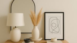 A vignette is a small, intentional arrangement on a shelf, console or...