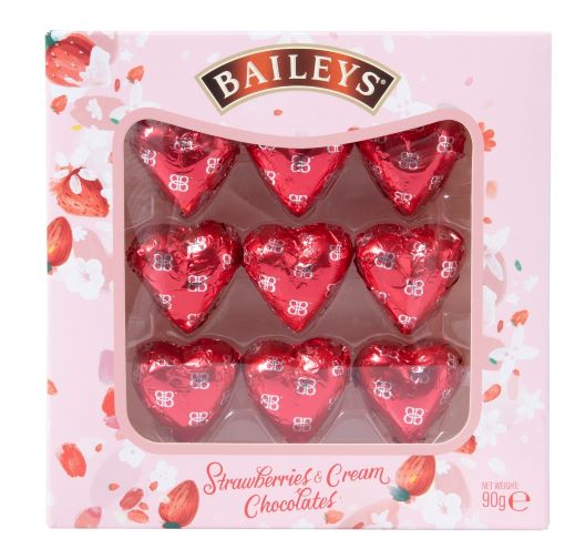 - Baileys Strawberries and Cream Chocolate Hearts, 90g – €5