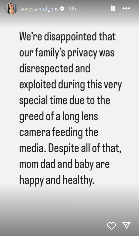 Vanessa chose to take to social media to announce the arrival of her little one while also speaking out about not being the first person who got to share the news of her baby’s birth with the world.