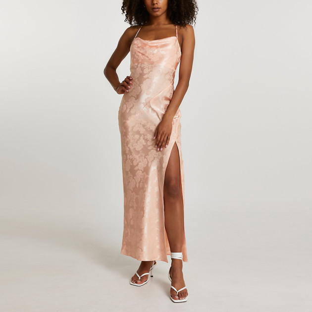River Island Orange jacquard cowl midi slip dress