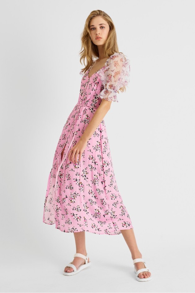 French Connection Elitan River Daisy Drape Midi Dress