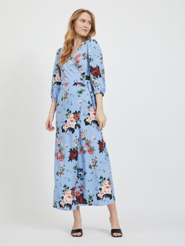 Go for the throwback look with this stunning floral, wrap maxi dress. The ¾ sleeves and V-neck make it summery and light blue background gives it that gorgeous country wedding feel. Easy to wear and definitely a perfect one for a more dressed down wedding, this VILA dress is one you can wear again and again! An investment piece, most definitely!