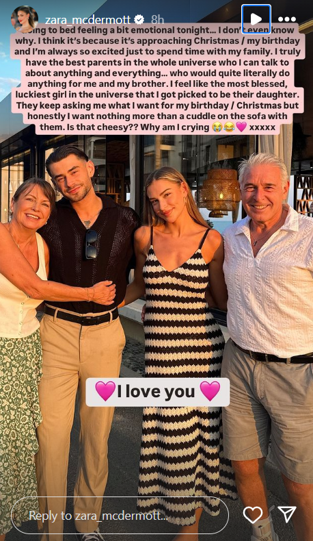 Zara McDermott pens heartfelt tribute to praise her family